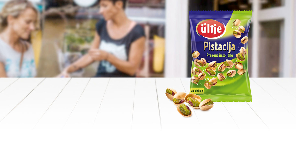 Pistacije z lupino, pražene brez maščob in soljene so posebnost v ültje ponudbi. Trirobno zeleno-rjavo jedrce z blago aromo dviguje uživaški srčni utrip.